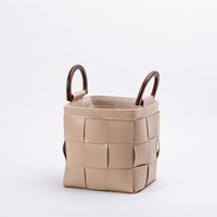 Cesta de almacenamiento de cuero tejida minimalista moderna, cesta de almacenamiento de mano de madera redonda, accesorios de decoración para el hogar para sala de estar y dormitorio