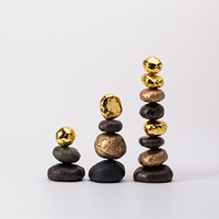 Pieza decorativa de piedra apilada de oro negro creativo-Centro de mesa elegante para sala de estar, mesa de té y detalles de estantería